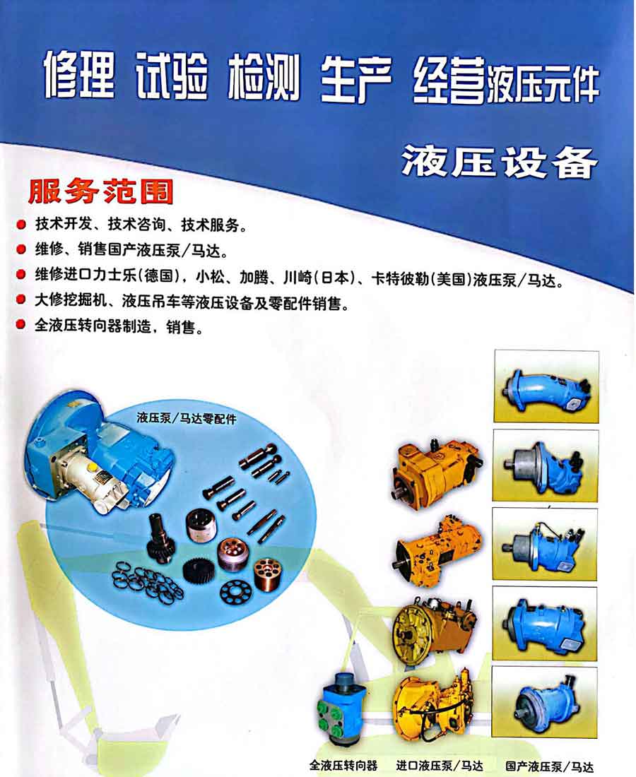 公司现生产的斜轴柱塞式变量、定量泵/马达、摆线式全液压转向器可为各工程机械、冶金机械、液压起重机、挖掘机筑路机、重型矿用机船舶等液压设备配套,并承接上述各类进口机械的国产化改造,液压系统大修。同时制造和经销国产进口液压泵/马达,液压阀等元件的零配件具有生产、维修、实验、检测鉴定、经营完整的运营体系。